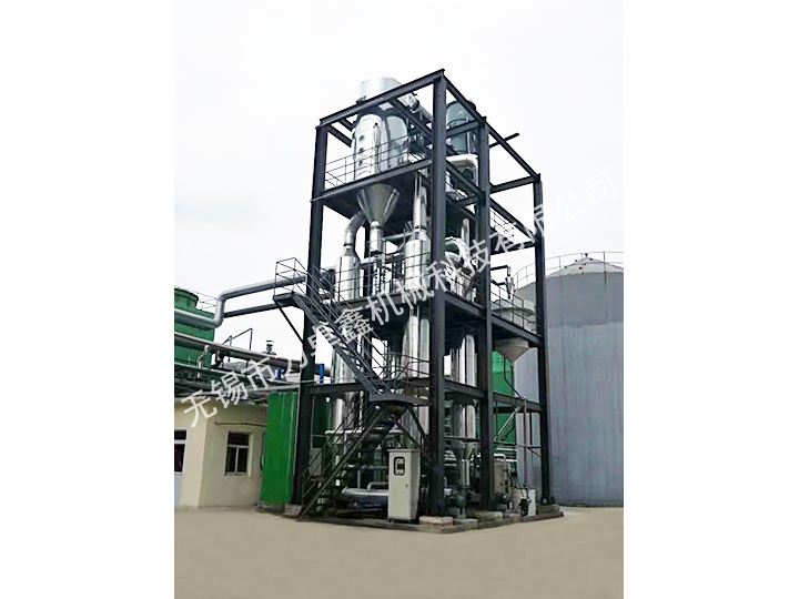 工作原理:四效降膜蒸發(fā)器需濃縮的料液由泵送入加熱管頂部,沿著加熱管內(nèi)壁形成液膜向下流動。在這個過程中,由于管外的加熱,管內(nèi)液膜開始沸騰并部分蒸發(fā)醫(yī)藥濃縮降膜蒸發(fā)器